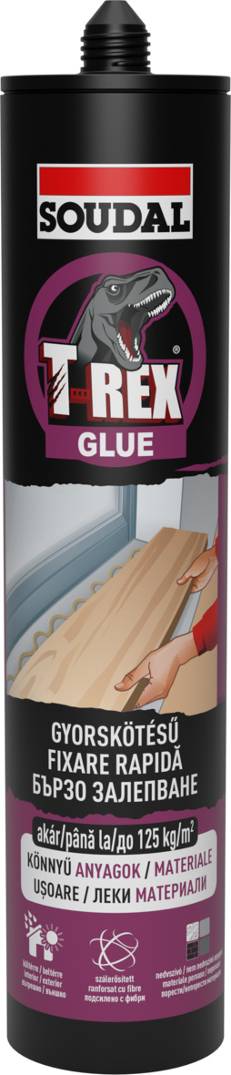 A T-REX Gyorskötésű egy használatra kész, egykomponensű, szálerősített, oldószeres szerelőragasztó, nagy kezdeti (125 kg/m2 teljes felületen alkalmazva) és magas végső ragasztóerővel. Helyettesíti a csavarokat, szeget. Kül- és beltéren is alkalmazható. Porózus és nem porózus felülethez egyaránt.
