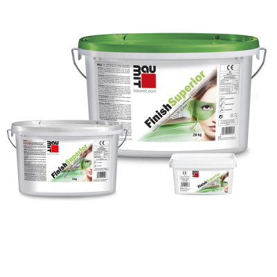 A Baumit FinishSuperior felhasználásra kész glettanyag, 0-2 mm vastagságig, extra finom felületű, kiváló minőségű kézi, gépi és hengerelhető glettanyag.