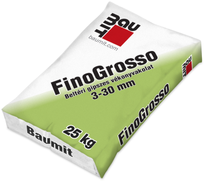 A Baumit FinoGrosso egy mész-gipsz alapú beltéri vékonyvakolat, amely 3-30 mm vastagságban alkalmazható. Géppel és kézzel is könnyen feldolgozható, ideális simított vagy dörzsölt felületek kialakítására.