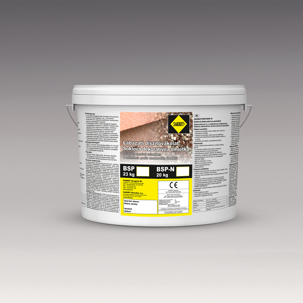 Az alapfelületet SAKRET GRW vakolatalapozóval alapozzuk le, száradást követően hordható fel a BSP lábazati díszítővakolat